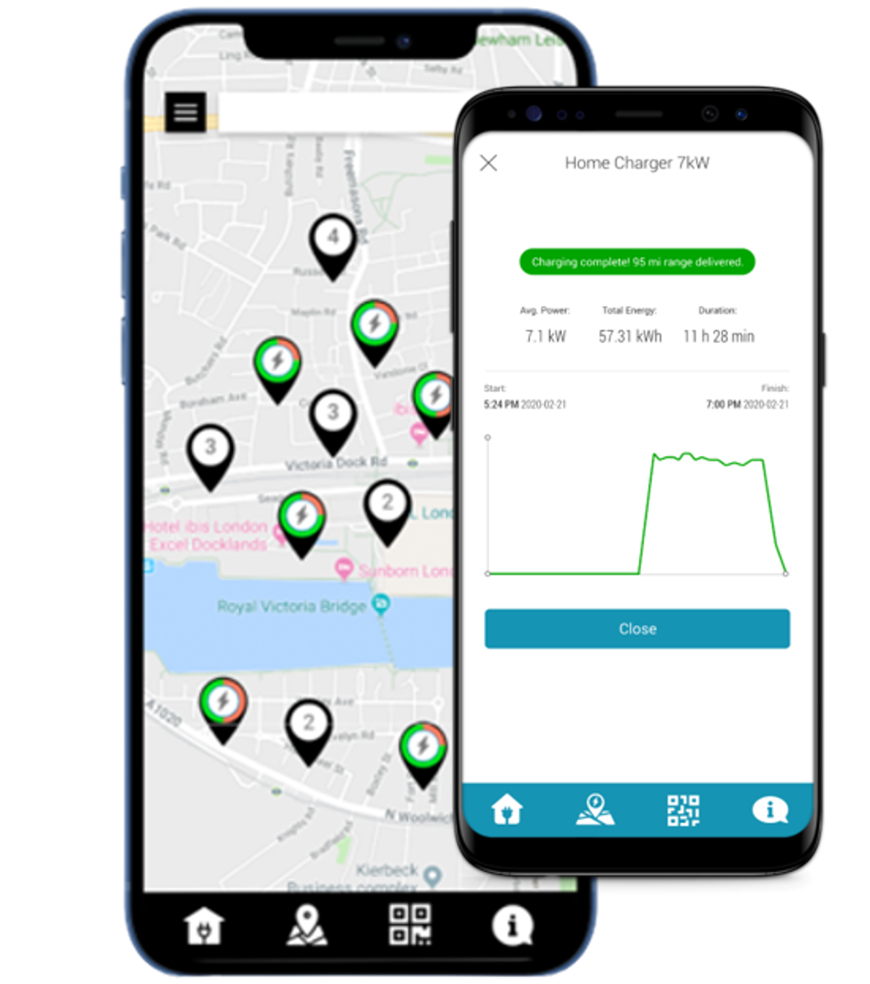 Our free app allows you to initiate and stop a charge for any of our chargers, find public chargers when you're on the go, and provides charger owners easy management and insights into your charging network.